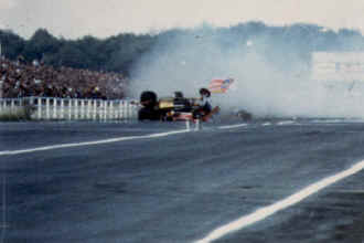 So you here you have the team of devotees who spend virtually all their spare cash and all their spare time in running a top Funny Car, with all the attendant risk of serious injury, financial destruction and frayed nerve ends. They accept breakages costing hundreds of pounds with a philosophical shrug, tear down and rebuild engines without a second thought and take the rough, which can be very rough, with the smooth, which sometime never makes itself apparent.